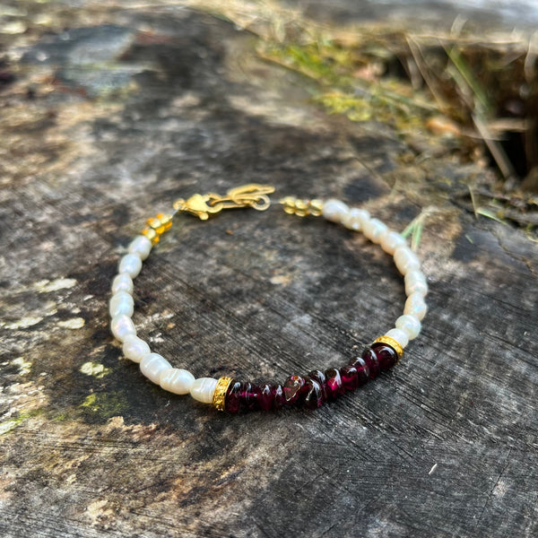 Garnet beads, freshwater pearls, gold filled, stainless steel
